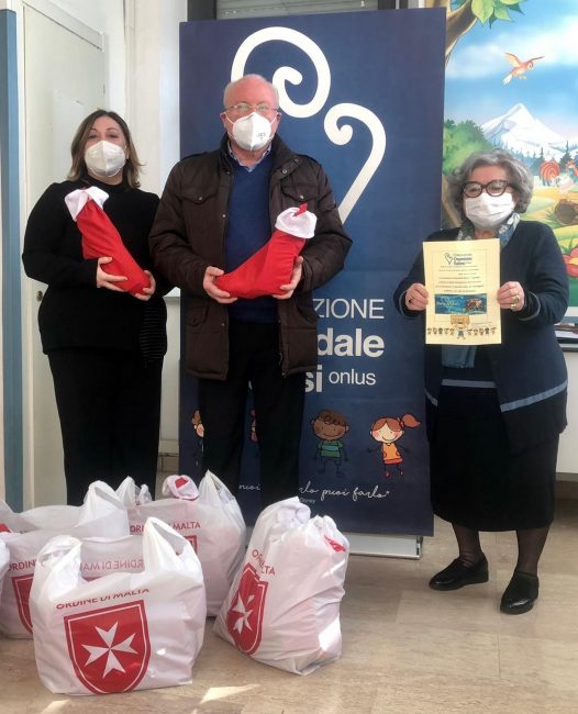 Per la loro Festa della Befana i Cavalieri giovanniti hanno portato all’Ospedale Pediatrico Salesi di Ancona decine di calze piene di dolciumi, per un momento di felicità dei piccoli ricoverati.«E’ stato un grosso impegno, ma spinti e aiutati dal delegato Marchese Francesco Costa, dall’inesauribile attività del cappellano don Andrea Simone, dai cavalieri e dalle dame e soprattutto dai Volontari, siamo riusciti a mettere in pratica il Carisma dell’Ordine. Ora siamo un po’ stanchi, ma felici» così affermano il Dott. Pietro Cappuccini, cavaliere di Grazia Magistrale e la dottoressa Cristiana Camilloni, Donata di Devozione, che hanno consegnato ieri mattina al direttore della Fondazione Salesi, Laura Mazzanti, le calze per i bambini ricoverati. La pandemia impedisce purtroppo il contato con i piccoli ricoverati, pertanto le calze verranno consegnate ai bambini dal personale dei vari reparti e per loro sarà comunque festa.