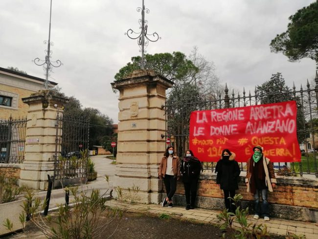 Blitz dei Centri Sociali Marche: «L’aborto deve essere libero, basta fondi alla sanità privata»