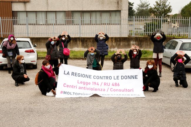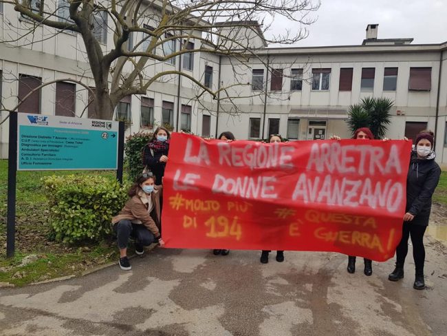 A raccogliere il loro grido, il gruppo Altra Idea di Città: «Nonostante le restrizioni dovute all’emergenza sanitaria le donne marchigiane si stanno organizzando per un’ ampia mobilitazione contro le dichiarazioni dell’ Assessora Latini, e dell’ Assessore Saltamartini che lasciano presagire un forte arretramento sulle politiche socio sanitarie e a contrasto della violenza sulle donne. La Regione ha dichiarato guerra alle donne e al loro diritto di scelta sui loro corpi. Le donne resisteranno e non faranno sconti sulla loro libertà di esistere». Presidio anche a Jesi, di fronte al poliambulatorio Asur di via Guerri, da parte del Collettivo Transfemminista: «Oggi anche a Jesi, come in molte altre città delle Marche, siamo scese in strada per manifestare la nostra rabbia e la nostra indignazione nei confronti delle posizioni espresse dalla giunta regionale. Non faremo un passo indietro rispetto ai nostri diritti, messi ancora una volta in discussione. Questa volta è il turno della giunta regionale che, composta quasi interamente da uomini, ha intenzione di rivedere le linee guida che regolano la somministrazione della pillola abortiva ru486, da agosto disponibile anche nei consultori e in day hospital. Questo attacco si va ad aggiungere ad una situazione già compromessa in quanto l’aborto sicuro in troppi territori italiani non è ancora garantito, a causa del mancato rispetto della legge 194. Pericolose, sessiste e razziste sono dunque le dichiarazioni di Saltamartini e della Latini, ma non sono passate inosservate. Non faremo un passo indietro. La regione attacca, le donne rispondono!»