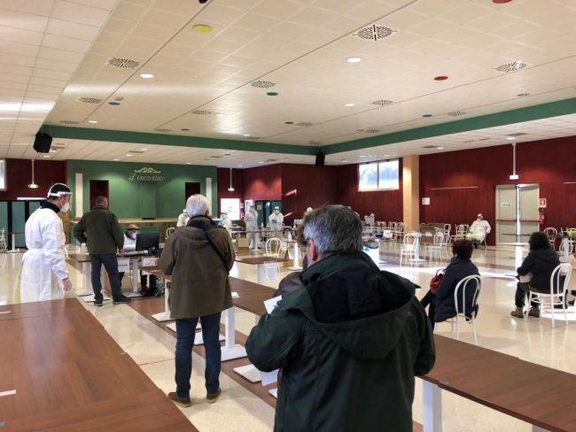 I punti di effettuazione dello screening diffuso sono allestiti, sempre in modalità drive, nell’area del campo sportivo di Amandola, località Pian di Contro, per gli abitanti di Amandola, Montefalcone Appennino, Montefortino, Montelparo, Santa Vittoria in Matenano e Smerillo. Oggi dalle 8.30 alle 13.30 e dalle 14.30 alle 18.30 al PalaGuerrieri di Fabriano (viale Beniamino Gigli 13) possono sottoporsi al tampone rinofaringeo rapido tutti i cittadini di Fabriano, Sassoferrato, Cerreto d’Esi, Genga, Serra San Quirico e Mergo. Screening di massa all’interno dell’operazione “Marche Sicure” anche nell’ambito territoriale sociale di Senigallia: sono interessati nove comuni che anche oggi hanno a disposizione due centri di riferimento dove sottoporsi al tampone antigenico rapido. Il primo è allestito presso il Palasport Regione Marche dell’Istituto Panzini di Senigallia (Via Capanna 62) ed è riservato ai residenti di Senigallia, Castelleone di Suasa, Corinaldo, Ostra, Ostra Vetere e Trecastelli, con il seguente orario: 8.30 -13.30 e 14.30 -18.30. Il secondo è disponibile a Serra De’ Conti, nel Centro sociale “L’Incontro” di Via Vanoni. Possono recarvisi i residenti di Serra De’ Conti, Arcevia e Barbara, sempre con lo stesso orario: 8.30 -13.30/14.30 -18.30. Fino a domenica 17 gennaio possono sottoporsi allo screening di massa gratuito anche gli abitanti di Civitanova Marche, Morrovalle, Montecosaro e Monte San Giusto. L’esame si svolgerà presso il Palarisorgimento di Via Ginocchi, a Civitanova Marche, dalle 8 alle 20.