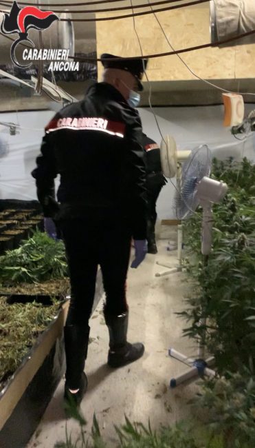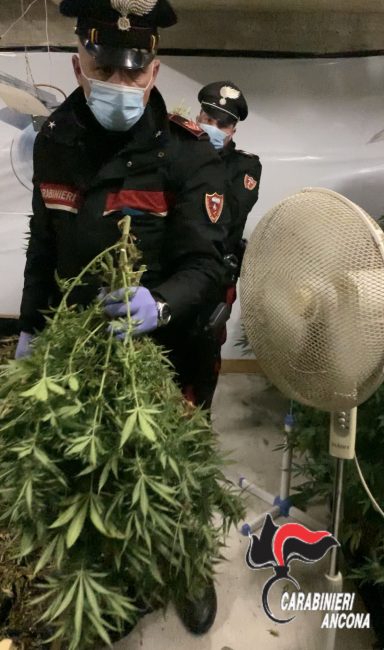 Soldi in contanti, marijuana essiccata, cocaina e una pistola con sette colpi in canna. E’ quanto rivenuto nella giornata di ieri dai carabinieri della Compagnia di Jesi e dai colleghi del Nucleo Operativo Ecologico di Ancona in un deposito seminterrato. Indagini in corso per risalire agli utilizzatori del magazzino. Inizialmente, l’operazione non era nata come un’attività antidroga. I militari hanno infatti effettuato un controllo in un’autofficina di Jesi per verificare il rispetto delle normative ambientali in relazione alle gestione degli olii minerali e delle batterie esauste, nonché del rispetto della normativa per il contenimento del covid-19. Durante l’accertamento, l’attenzione dei militari è stata attirata da un forte odore, proveniente da un confinante magazzino posto in un seminterrato e riconducibile alla possibile presenza di marijuana. I carabinieri quindi, dopo aver avuto accesso al locale, hanno scoperto una vera e propria piantagione indoor di marijuana. La perquisizione del locale ha così consentito di rinvenire e sequestrare 1255 piante di marijuana, circa 8 chili di cannabis già essiccata, imbustata e pronta per la vendita, circa 800 grammi di cocaina, oltre centomila euro in contanti in banconote di diverso taglio ed una pistola cal. 6.35 clandestina con 7 colpi. Sono in corso accertamenti per verificare i materiali utilizzatori del locale.