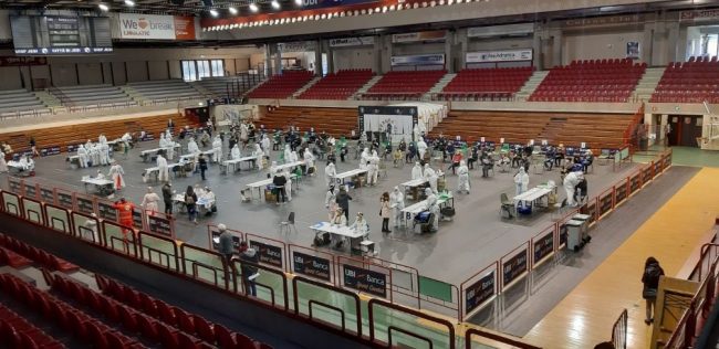 La campagna di screening “Marche sicure” promossa da Regione Marche e Asur è partita questa mattina al PalaTriccoli di Jesi. Sono siponibili 6.500 tamponi nasofaringei rapidi, gratuiti e su base volontaria. Tante le prenotazioni, arrivate dal 12 al 15 gennaio (quasi 4mila solo il primo giorno) tramite i numeri telefonici e le piattaforme online reperibili sul sito internet del Comune di Jesi. Sono interessati all’iniziativa i cittadini di Jesi, di Belvedere Ostrense, Castelbellino, Castelplanio, Cupramontana, Maiolati Spontini, Monsano, Montecarotto, Monteroberto, Morro d’Alba, Poggio San Marcello, Rosora, San Marcello, San Paolo di Jesi e Staffolo. Raccolto l’appello lanciato dall’Amministrazione comunale, per voce dell’assessore alla sanità Marialuisa Qualglieri, ad aderire con l’obiettivo di «prevenire la diffusione del contagio». Saranno 12, distanziate l’una dall’altra, le postazioni per i tamponi che verranno predisposte nel parquet del palazzetto. Volontari di protezione civile misureranno la temperatura a chi accede alla struttura; all’interno, personale sanitario condurrà le operazioni di screening. Le postazioni garantiranno fino a 250 tamponi l’ora. Finora, sono state circa 6mila le prenotazioni: posti ancora disponibili.
