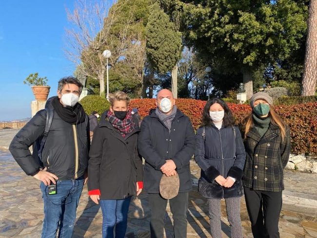 La troupe di Linea Verde, la trasmissione di Rai Uno, fa di nuovo tappa a Osimo. Ieri pomeriggio il sindaco Simone Pugnaloni on l’assessore al Turismo Michela Glorio ha salutato gli operatori della rete ammiraglia della Tv nazionale al seguito della conduttrice Angela Rafanelli. «Sono state fatte riprese nelle grotte della Osimo sottorranea, dal belvedere di Piazza Nuova e nel centro citta’. – ricorda Pugnaloni – Osimo è sempre piu’ proiettata sui principali palcoscenici nazionali per la sua promozione. Un bel traguardo. Ritroveremo la nostra bella citta’ raccontata nella sua meraviglia nei prossimi sabati. Appena avremo notizia della data vi aggiorneremo». La puntata di Linea Verde Life dovrebbe andare in onda sabato 30 gennaio. Oggi le telecamere di Linea Verde proseguirà il suo tour tra le bellezze della Valmusone. Registreranno a Castelfidardo alla Selva e al museo della fisarmonica, seguirà un passaggio a Numana e a Offagna.