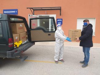 Focolaio alla Fondazione Recanatesi di Osimo, il sindaco Simone Pugnaloni consegna 1000 mascherine fpp3 al personale della casa di riposo di via Flaminia II.