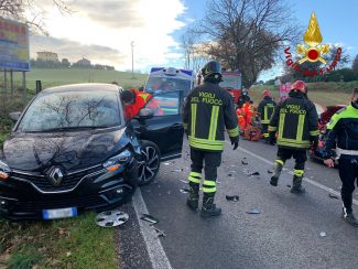 Lo scontro frontale con conseguenze più gravi avvenuto in via D’Ancona questa mattina a Osimo