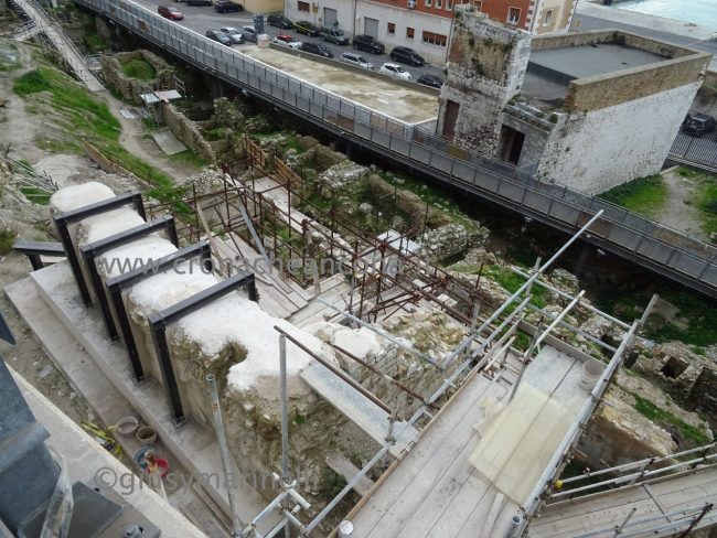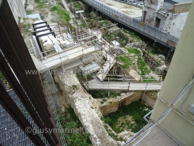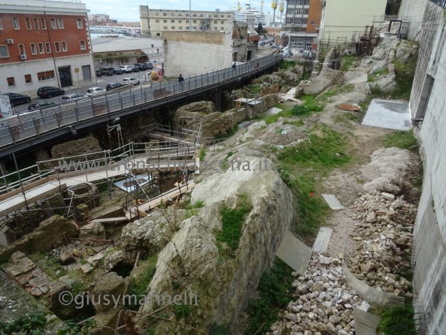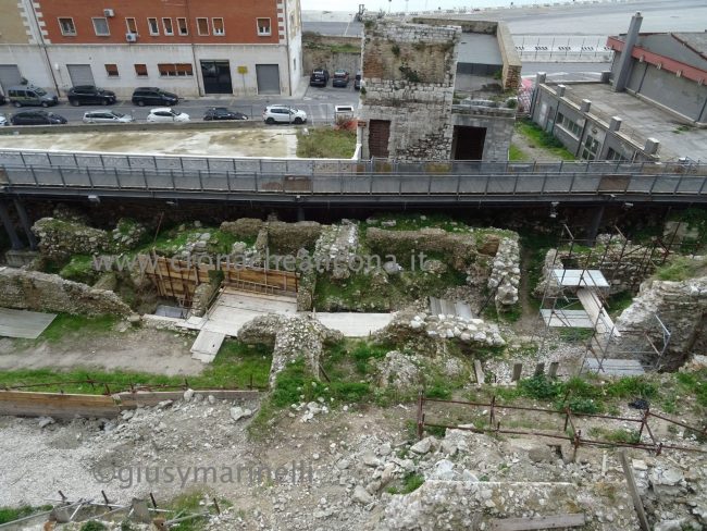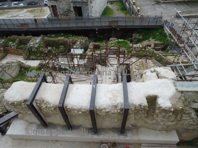 Notizia attesissima, già. Perché dopo i crolli e i distacchi di parti di murature risalenti all’ormai lontana primavera-estate 2018 e i successivi interventi emergenziali di ripristino, si era avuta l’impressione di una situazione di stallo dai tempi indefiniti. Ma andiamo per ordine. Iniziando dal piano complessivo per restituire una situazione di iper-decoro di tutto l’archeo-sito di enorme valore storico – disposto su più strati, con opere edilizie (magazzini e ambienti voltati con archi, destinati anche alla riparazione di imbarcazioni) risalenti ad un periodo che va dalla prima realizzazione del porto romano/ellenistico del II sec. a.C. fino al VI secolo d.C. Rimossa del tutto la segmentata tettoria in plexiglas e tubi ormai ultra pericolante e lesionata, la sezione Archeologia della Soprintendenza ha terminato la prima fase della messa in sicurezza, quella più urgente, con sistemazione di numerose “putrelle” (barre di acciaio a forma di C) in alcune porzioni di pareti ma anche nella zona dove sono presenti esedre e vani per i magazzini. Mentre i tecnici specialisti completeranno la seconda fase della messa in sicurezza, estesa ad altre zone, consolidando varie strutture portanti, è già stato ultimato il progetto definitivo, con tanto di perizie, per il restauro. Di più. La Soprintendenza ha appena incaricato un esperto ingegnere esterno per il progetto esecutivo che sta lavorando in tempi stretti. Poi la fase del bando di gara per i lavori. Quanto ai fondi nessun problema. Va precisato che una porzione di restauro, costata oltre 40mila euro, era stata già ultimata – dopo i problemi dei tre anni fa – con l’eliminazione della porzione di tettoria che aveva ceduto, un’opera di “cinghiatura” della parte muraria sottostate sgretolatasi, la sistemazione di un apparato di drenaggio e il consolidamento della marna superficiale e di un’altra muratura tramite “incatenamento” e installazione di plinti (piccole lastre di sostegno con funzione di fondamenta).