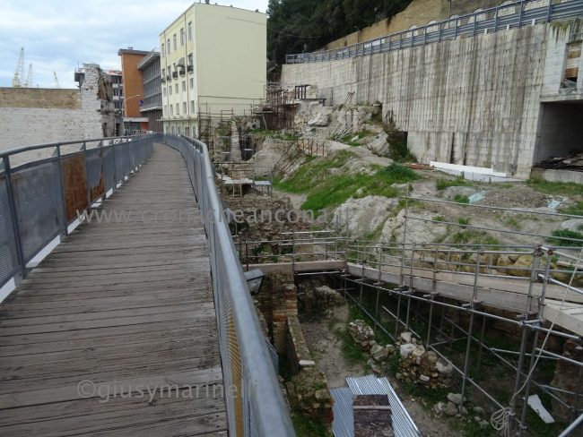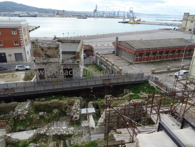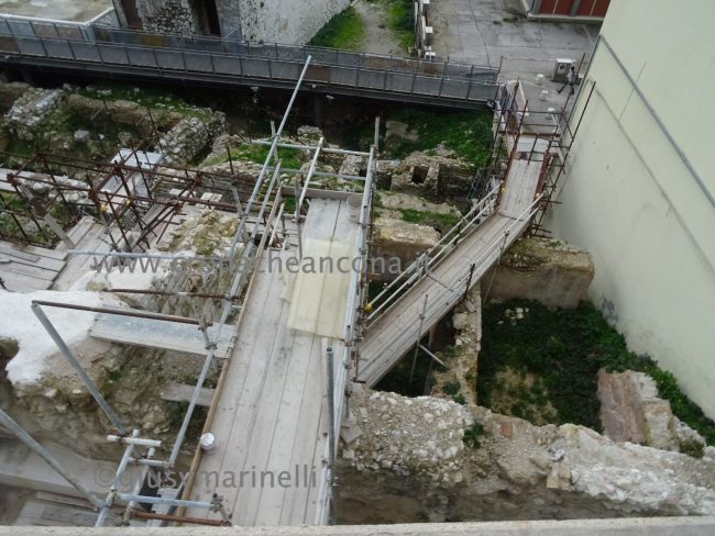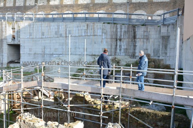 Ultimate anche le propedeutiche e complesse attività di misurazione e ri-mappatura di tutta l’area da restaurare, attività che ha visto la Soprintendenza supportata da due Dipartimenti dell’Università Politecnica delle Marche (Univpm), in particolare il Dicea, con il prof. Paolo Clini che ha lavorato con una equipe di suoi studenti dotata di strumentazioni d’avanguardia. Sempre per il restauro di tutto il sito, altre risorse, tra i 90mila e poco più di 100mila euro sono già dal 2016 a disposizione della Soprintendenza. Contestualmente alla corposa risistemazione di tutta l’area coi reperti, come già citato, passi avanti già compiuti per l‘operazione nuova tettoia, che hanno visto in parte come protagonista il prof Gianluigi Mondaini, ordinario alla facoltà dell’Univpm, membro del Dipartimento Ingegneria civile, edile e architettura. Il quale ha completato il progetto di pre-fattibilità. Pronto anche il progetto definitivo, si sta per passare a quello esecutivo. Riserbo della Soprintendenza sui materiali da scegliere per il vastissimo manto di copertura. Si sa che la struttura sarà leggera ma resistentissima, a bassissimo impatto ambientale e trasparente, e quindi capace di valorizzare al massimo la pubblica visibilità dalle passerelle delle vestigia romane d’uso portuale-mercantile. Più corposi i finanziamenti per questo piano parallelo, alcune centinaia di migliaia di euro, ma anch’essi disponibili. Saranno attinti dal fondo complessivo di 2milioni e 300mila euro stanziato dal Mibact per attuare il cosiddetto “Parco culturale”, un multi-progetto – da attuare per lotti – comprensivo di interventi di cantiere riguardanti anche gli altri siti archeologici del centro storico anconetano. Se l’iter procederà, come si auspica, in modo spedito. Da sottolineare che il piano si sta sviluppando e si svilupperà in stretto coordinamento tecnico, oltre che burocratico-urbanistico, tra la Soprintendenza e il Comune – che ha già in cantiere il nuovo sistema di illuminazione del sito archeologico – in particolare con lo staff dell’architetto Claudio Centanni, dirigente dello Sportello unico integrato municipale per l’edilizia. Del resto il nuovo porto romano sarà il più grande fiore all’occhiello del generale progetto “waterfront” che vedrà impegnata l’Amministrazione comunale.