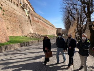 Dopo il dissesto aggravato dal cedimento di ieri, questa mattina l’assessore regionale Stefano Aguzzi ha effettuato un sopralluogo sul posto, accompagnato dal sindaco Matteo Principi, «sottolineando la vicinanza della Regione e la disponibilità ad affiancare Corinaldo in tutto e per tutto nel percorso di ripristino.Una volta conclusa la fase di messa in sicurezza anche del patrimonio, come già annunciato in questi giorni, – spiega ancora il sindaco Principi – si darà seguito con somma urgenza alla fase di ripristino della falla, su cui i tecnici e i professionisti incaricati stanno già definendo il tipo di intervento da attuare, forti anche della disponibilità della Regione Marche ad affiancare Corinaldo in questo percorso. Non appena chiarito l’intervento e quindi progettato nella sua realizzabilità, verranno attivati tutti gli strumenti condivisione e comunicazione con la comunità per illustrare nei dettagli lo stato dell’arte e l’intervento previsto».