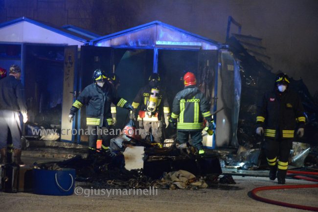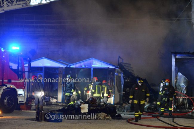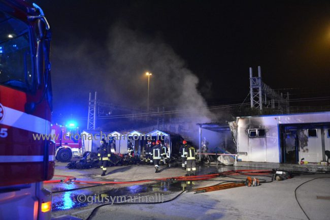 Vasto incendio a Marina Dorica: a fuoco i capanni dei diportisti (Foto)