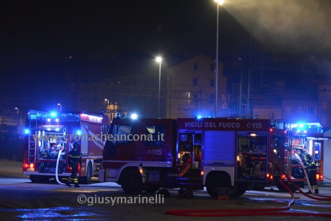 «L’allarme – riprende – è stato dato dal portiere che, tramite i due monitor, ha la possibilità di vedere tutto quelle che viene ripreso dalle tante telecamere posizionate nella Marina Dorica. Non appena si è accorto delle fiamme, ha mandato sul posto un vigilante che via radio ha confermato quanto stava accadendo. Successivamente è partito il piano di emergenza che, come prima cosa, vede la chiamata ai vigili del fuoco, giunti in meno di dieci minuti e con una grande schiera di mezzi tanto che sono poi riusciti a contenere l’incendio in breve tempo, senza la necessità nemmeno di far fermare il traffico ferroviario. Ovviamente, anche io sono accorso per vedere cosa stava accadendo».