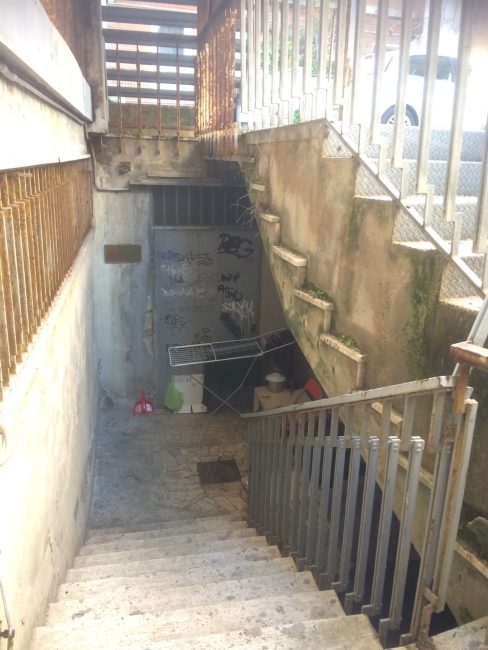 L’abbiamo “intercettato” il primo pomeriggio di sabato scorso, Hodan, completamento rannicchiato dal suo sacco a pelo, mentre dormiva profondamente. E in punta di piedi, per non disturbarlo, abbiamo scattato alcune foto capaci, più di queste righe, di descrivere come dove è costretto a metabolizzare gran parre delle sue giornate. Siamo in fondo ad uno dei sottoscala del citato Palasport. In fondo all’ultimo tratto di ringhiera arrugginita, Hodan, in un cubicolo aperto lateralmente ma protetto dalla parte inferiore di una rampa di gradini, si è arrangiato alla meglio: una lunga tavola di assi di legno con sopra diversi cartonati e due materassini come “letto”; una sediolina di plastica con cuscino, uno stendino dove appendere gli abiti lavati, un basso tavolinetto con una pentola, scopa e paletta per dare una ripulita ogni tanto e perfino qualche piccolo oggetto d’arredo chiaramente proveniente dal suo paese. Dall’ex Palaveneto e immediati dintorni, fino a via Montebello, passando per via Curtatone, o per il tratto senza sbocco diventato quasi tutto erboso di ciò che resta di via Della Cupa, è tutto un pullulare di palazzi e locali chiusi e da anni in disuso, tra cui due scuole, gli ex istituti ragioneria “Stracca” e professionale Ipsia in via Curtatone, oltre ad altre dependance dell’ex Palasport (solo per fare alcuni esempi) ed immobili con vetrate nati per ospitare negozio mai aperti. Quelli del Comune si fanno vedere ogni tanto, per rimettere catene e lucchetti divelti, sprangare porte sfondare, murare qualche ingresso.