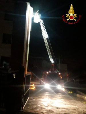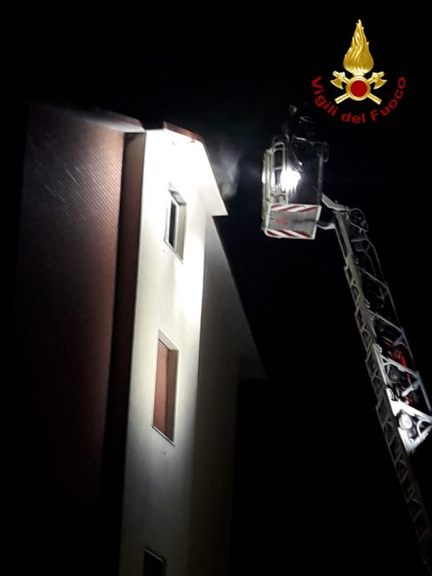 Soffitta in una palazzina di 4 piani in fiamme a Jesi nel cuore della notte, una persona è finita alI’ospedale per accertamenti dopo aver inalato il fumo sprigionato dall’incendio. I vigili del fuoco sono intervenuti intorno a mezzanotte e mezza circa a Jesi in via Piandelmedico per domare il rogo nel locale di circa 40 mq all’ultimo piano dell’immobile. Sul posto è arrivata la squadra di Jesi, con in supporto l’autoscala dalla sede centrale di Ancona, che ha spento le fiamme e messo il locale in sicurezza. I residenti presenti nello stabile sono stati fatti uscire precauzionalmente durante le fasi di estinzione dell’incendio a causa del fumo che aveva invaso tutti i locali. Uno dei residenti del palazzo è stato trasportato al pronto soccorso in ospedale per i controlli dal personale del 118. Non è stato possibile accertare le cause all’origine dell’incendio ma c’è alta probabilità che la natura sia accidentale data la vicinanza del locale alle canne fumarie del tetto.