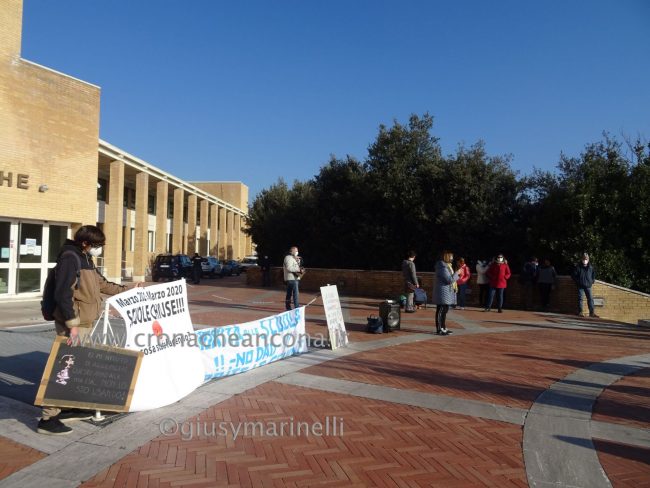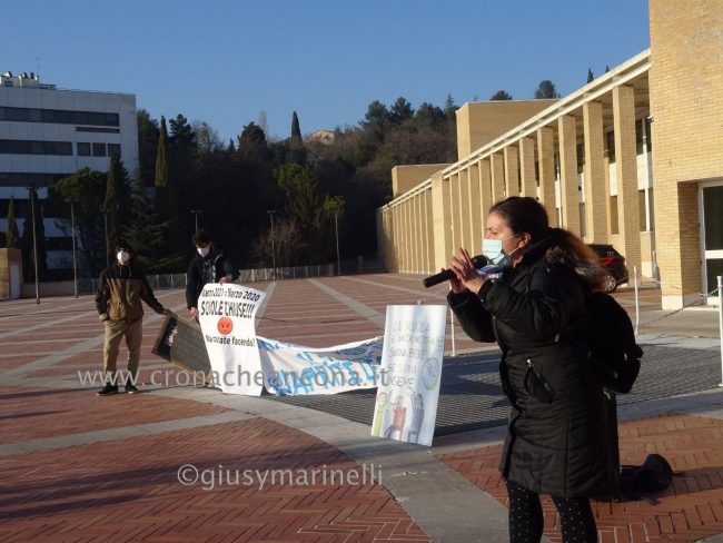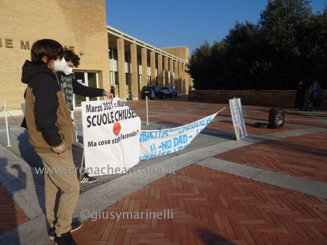 Nuovo sit in del comitato Priorità alla scuola al grido di «basta didattica a distanza». Oggi pomeriggio, di fronte a Palazzo Leopardi, una cinquantina tra insegnanti, genitori e studenti, hanno contestato l’ordinanza firmata dal governatore Francesco Acquaroli (che dal 27 febbraio ha introdotto la dad al 100% in tutte le superiori delle Marche e nelle classi di seconda e terza medie dell’Anconetano e del Maceratese) e quella della sindaca di Ancona Valeria Mancinelli, che da oggi ha chiuso gli istituti di ogni ordine e grado nel capoluogo. «Con la chiusura delle scuole salta anche il tracciamento, di cui gli istituti sono baluardo – osserva Silvia Mariotti, portavoce del Comitato –. Gli studenti sono stanchi e delusi dalle istituzioni, si sentono considerati come degli untori. Registriamo anche moltissime situazioni di depressione, apatia e di volontà di abbandonare la scuola, e questo è veramente grave». Durante il sit in statico, si sono susseguiti cori contro il governatore («Acquaroli buffone»), accompagnati da striscioni quali «la scuola è una orchestra suona bene se suona insieme». Per domani è atteso il pronunciamento del Tar delle Marche sull’impugnativa dell’ordinanza regionale da parte di un un gruppo di sette genitori che già a gennaio si era rivolto al tribunale amministrativo. Il Tar ha chiesto alla Regione di consegnare la documentazione con i dati epidemiologici alla base del provvedimento.