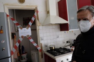 Lo zio di Andrea Paladini, Giorgio Sacchettoni, nella cucina del nipote e lo stanzino della caldaia posto sotto sequestro