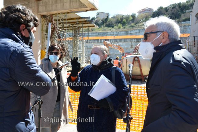 «Non si azzardi ad avere una crisi aziendale». Ironia amara quella della sindaca Valeria Mancinelli, che rivolge, scherzando, queste parole all’ingegner Sabatino – della ditta Rennova di L’Acquila a cui è stata affidata la realizzazione del park e dell’autostazione all’ex Verrocchio – stamattina insieme alla presentazione dell’avvio del cantiere. Una battuta sì, ma fino ad un certo punto. Perché già 15 anni fa, proprio in quegli spazi, era stata ipotizzata la creazione di un ampio parcheggio all’ingresso nord della città, ma poi l’impresa che avrebbe dovuto realizzarlo entrò in crisi e non se ne fece niente. Piccola consolazione: il Comune ha vinto il contenzioso e sono stati riconosciuti 1,5 milioni di euro, ma recuperare quei soldi sarà difficile. «Quello è il passato, io preferisco guardare al futuro», dice la sindaca, sottolineando l’importanza dell’avvio dei lavori per il «recupero di un altro dei catafalchi che hanno segnato la storia della nostra città negli ultimi 20 anni». Il progetto, tassello dei cantieri legati al Bando periferie e del valore di 4,2 milioni di euro, prevede 261 posti auto nel park sopraelevato – 1800 mq raggiungibili sia da via Berti, sia con una rampa a doppio senso di marcia con imbocco da via Flaminia –, al di sotto del quale ci sarà un’autostazione per sette mezzi pubblici. Tempi di realizzazione stimati in due anni. Verrà realizzata anche una rotatoria in piazzale Tre Mori e ci saranno ritocchi anche in piazza Rosselli. Nel complesso – una struttura traslucida, appoggiata su un basamento in pietra, che la notte sarà illuminata – sarà presente anche la palazzina viaggiatori con sala d’attesa, info point, biglietteria, bar e servizi. Ci sarà anche spazio per l’eventuale realizzazione di uffici per le attività connesse. «Questa struttura – spiega Ida Simonella, assessora con delega al Piano strategico – si lega ad una serie di fondi relativi alla mobilità sostenibile, al rinnovo del parco mezzi: è qui che arriverà l’anello filoviario, che ne costituisce il nucleo centrale». Partita, quest’ultima, che vede il Comune destinatario di 20 milioni di euro di fondi ministeriali (13 per il rinnovo del parco macchine del Tpl e 7 per la realizzazione della rete filoviaria e l’acquisto di alcuni filobus). Per il momento, niente cavalcavia a collegare il park con la stazione: «Non era previsto nel progetto originario per ragioni di spesa e di tempi – spiega Mancinelli –. L’avviso del Bando periferie è uscito a maggio 2016, con scadenza ad agosto 2016: ancora non avevamo il progetto e, siccome il ponte andrebbe a finire nell’area delle ferrovie, servivano le autorizzazioni da parte di Rfi, ed in due mesi non si sarebbe fatto in tempo. Però questo progetto è stato predisposto per poter accogliere, in seconda battuta, il cavalcavia. Quando avremo l’accordo con Ferrovie e le risorse, potrà essere realizzato».
