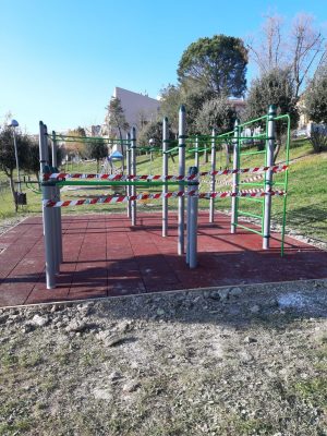 Istallata nel parco di via Scandalli a Camerano la struttura per l’allenamento “outdoor” ma subito preclusa al pubblico per evitare assembramenti e contenere la diffusione di nuovi possibili contagi da Covid 19. E’ stata proprio la sindaca Annalisa Del Bello, stamattina, a pubblicare sui social media un messaggio di richiamo all’ordine per i concittadini con la foto della ‘palestra’ delimitata dal nastro che ne blocca l’utilizzo. «Siamo in zona rossa, si può uscire di casa per motivi di lavoro, salute o necessità. Attività sportiva si può fare all’aperto nei pressi della propria abitazione. – ricorda la prima cittadina di Camerano – Sì possono portare i bambini al parco vicino casa, indossando la mascherina, con distanziamento ed evitando assembramenti. Le forze dell’ordine controllano il territorio, se la situazione risulterà critica sarò costretta ad emettere ordinanza dì chiusura dì tutti i parchi»