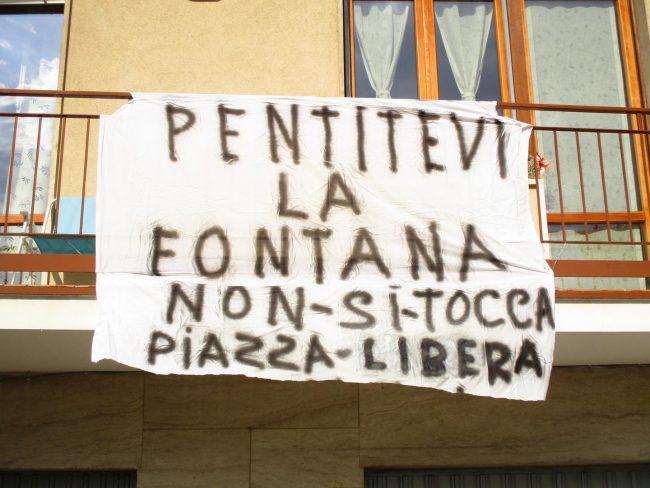 Spostamento fontana dei leoni: «Chi non è d’accordo appenda cartelli e striscioni alle finestre»