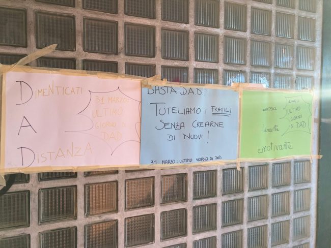 «L’unica didattica è in presenza», «Ridateci il futuro», «Il futuro non è la distanza». Sono solo alcuni dei contenuti dei cartelli apparsi ieri nelle scuole marchigiane. Sono stati apposti dai componenti del comitato Priorità alla Scuola che da tempo si batte per un ritorno in piena sicurezza sui banchi di scuola, promuovendo anche manifestazioni nelle piazze e sotto i palazzi della Regione. I cartelli di protesta sono apparsi nell’ultimo giorno di scuola prima della pausa di Pasqua. I volontari hanno tappezzato gli istituti di Pesaro, Fano, Ancona, Jesi e Macerata. Nel nuovo Dpcm, le scuole in zona rossa verranno aperte fino alla prima media.