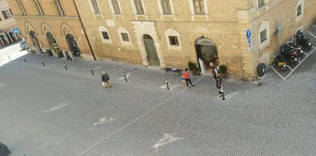«Il posizionamento di “pali” laterali che non ostruiscono il passaggio sia pedonale che dei veicoli e che non necessiti la rimozione nei giorni destinati al mercato settimanale o agli eventi in centro. –sottolinea in una nota Osimo Servizi – Un progetto lungimirante di programmazione e manutenzione che ha riguardato anche la segnaletica orizzontale, l’installazione di paletti rimuovibili di ultima generazione a tutela del pedone e l’installazione delle nuove fioriere. Un lavoro di squadra svolto dal settore segnaletica della Osimo Servizi coordinati dal direttore esecutivo in collaborazione con l’Amministrazione comunale, gli Uffici Tecnici ed il Comando di Polizia locale». Tra le curiosità: sulle panchine di piazza del Comune in questi giorni di zona rossa è stato necessario apporre cartelli che invitano a non sedersi salvo che per situazioni di emergenza proprio per evitare gli assembramenti.