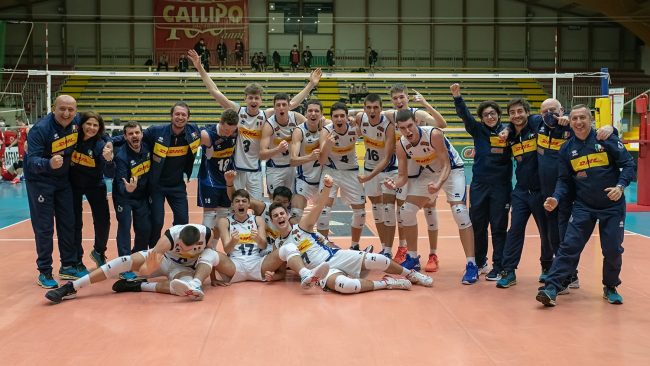Gli azzurrini di coach Monica Cresta – fa sapere una nota della Federazione Italiana Pallavolo- sono riusciti a concludere nel migliore dei modi il cammino che li aveva visti arrivare alla finalissima con un percorso netto, contraddistinto da un solo set perso nella seconda gara della pool contro la Germania. Sin dai primi scambi la nazionale azzurra è sembrata scendere in campo con il piglio giusto (9-5), complici anche i molti errori della formazione belga. Avversari degli azzurrini che però si sono riportati sotto, acciuffando il pareggio (12-12). Dopo un momento di appannamento i ragazzi di Cresta hanno ritrovato un buon feeling, costringendo i belgi a dover subire. Con l’ace di Barotto (17-13) e con l’attacco belga murato dagli azzurri (20-13), Bristot e compagni si sono involati verso la conquista del primo parziale 25-17.All’inizio della seconda frazione la nazionale tricolore è scappata avanti, mostrando ancora un’ottima pallavolo (8-5). Con il passare del gioco gli azzurrini hanno allungato (17-13). La formazione belga ha cercato di ritrovare il ritmo gara, riuscendo a conquistare una serie di punti che li ha avvicinati sempre più alla formazione azzurra (21-19). Gli azzurrini, però, non si sono piegati e sono riusciti grazie all’ace di Matteo Sacco e all’errore di De Vleeschhauwer a vincere anche il secondo set 25-23. Nel terzo parziale il copione non è cambiato con gli azzurrini che si sono portati subito avanti con l’attacco di Barotto (5-2). La nazionale belga poi si è rifatta sotto, complice un momento di appannamento degli azzurrini (12-12). Il finale di gara è stato molto equilibrato (21-21), ma Barotto e compagni non si sono fatti cogliere impreparati e con grande personalità e concentrazione hanno chiuso la pratica 25-23.