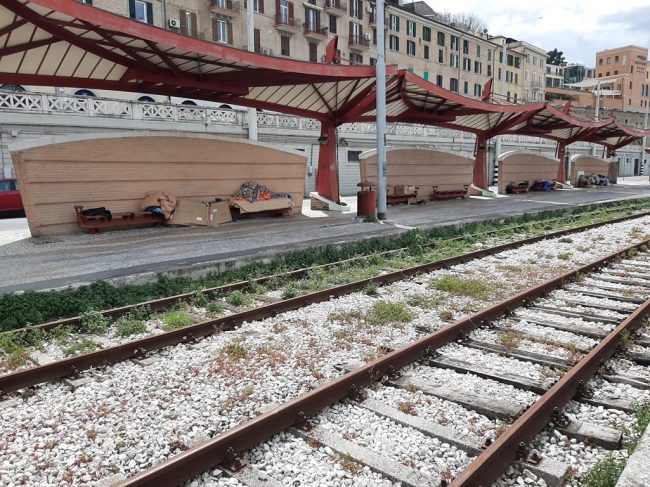 Complice la pandemia Covid, l’assistenza per i clochard è diminuita. Tanto che nel capoluogo regionale esiste solo un centro di pronta accoglienza notturna, l’ex albergo “Cantiani”, che ospita nelle sue camere un massimo di 40 persone (quando è più freddo), per dieci giorni, eccezionalmente prorogabili per due settimane. Chiusa da mesi la Mensa del Povero ad Ancona e la Tenda d’Abramo a Falconara (fruibile solo il servizio doccia) i senza tetto hanno a disposizione solo una mensa, presso la tensostruttura nel cortile dell’ex stabile “Un tetto per tutti”, poco dopo la stazione centrale di Ancona, dove vengono serviti pranzo e cena. Proprio alcuni volontari della Tenda d’Abramo, avevano inscenato nel febbraio scorso una manifestazione all’ex Stazione marittima di Ancona per sollecitare un incremento dei posti letto forniti dalle amministrazioni comunali. Quella falconarese è riuscita a collocare 9 soggetti dividendoli tra l’hotel “Trento e Trieste”, a Falconara, e l’hotel “Gino” ad Ancona. Numeri risibili, compresi quelli del ”Cantiani”, a fronte delle decine e decine, forse un centinaio, che cercano un’alternativa alla strada. La stazione marittima di Ancona è diventata un fantasma da quando FS ha deciso che non era più in linea con le sue strategie. Una chiusura che ha trascinato nell’off limits anche le altre stazioncine che negli anni erano state adeguate o costruite “ex novo” per avviare l’attesissimo eco-progetto di viabilità “Metropolitana di superficie”, con un collegamento da Falconara, passando per il porto dorico e per Passo Varano, fino alla zona Ikea nel comune di Camerano. Quasi mezzo miliardo di euro, soldi pubblici, buttati a mare.