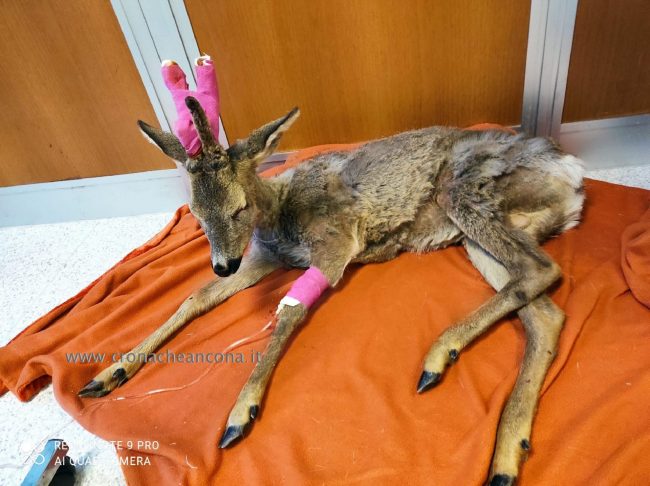 Il capriolo era stato investito qualche giorno fa sulla strada, tra Falconara e Marina di Montemarciano, da un suv che non si era fermato e soccorso da un automobilista di passaggio. A rilevare l’incidente erano stati i carabinieri e gli agenti della Polizia locale di Falconara. Curato dalla veterinaria Nadia Meldolesi stamattina l’esemplare e è stato liberato alla presenza anche di Andrea Visconti comandante della stazione Conero dei Carabinieri Forestali, di Costantino Renato assessore di Camerano e di Marco Veltri, l’automobilista che lo aveva soccorso per primo. Una scena emozionante vederlo saltellare di nuovo tra il verde della campagna. «Una storia iniziata in modo drammatico, ma a lieto fine. Pasqualino, questo è il nome che è stato dato a questa meraviglia della natura, è stato investito e lasciato a bordo strada, ferito e agonizzante.- ricorda l’assessore Costantino Renato – Grazie ai primi soccorsi di Marco Veltri e le cure amorevoli della dottoressa Nadia Meldolesi, Pasqualino è riuscito a riprendersi e a camminare in pochi giorni. Senza il loro aiuto questo cucciolone avrebbe rischiato quasi sicuramente di morire. Un ringraziamente va anche ai Carabinieri Forestali che hanno effettuato i primi rilievi e si sono resi disponibili per la fase del rilascio. Una storia a lieto fine, contornata da tanto amore e rispetto per la natura».