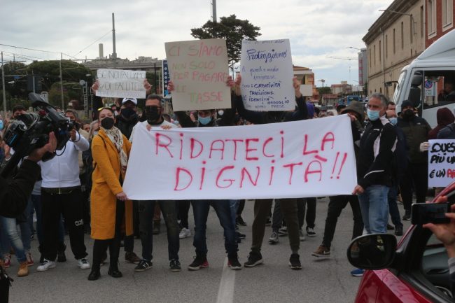 «Siamo arrivati alle 8.30 – racconta – per poi dirigerci successivamente in piazza Roma, dove si trova il Comune, e dove una piccola delegazione ha incontrato il sindaco per un tavolo di lavoro. Lo stesso primo cittadino è sceso per dimostrare la propria sentita solidarietà. La manifestazione – sottolinea – è stata pacifica e tranquilla ed è servita per portare alla luce il reale disagio che stiamo vivendo non solo noi, ma anche i nostri dipendenti che si sono improvvisamente trovati senza lavoro e con una cassa integrazione davvero misera, che continua ovviamente a diminuire con il trascorrere del tempo». I manifestanti hanno poi lasciato la città della “spiaggia di velluto” poco dopo mezzogiorno. Tra gli slogan: “Proteggiamo le piccole e medie imprese: creatività, tradizione, identità e orgoglio del nostro Paese”, “Ridateci la dignità”, “Questa non è più una quarantena, è un arresto domiciliare”, “Vogliamo lavorare” e “Ci siamo non solo per pagare le tasse”.