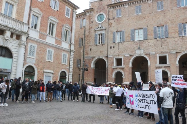 E’ stata una manifestazione pacifica quella che si è svolta, questa mattina, a Senigallia dove si sono dati appuntamento gli addetti del commercio, uniti sotto la bandiera del “Movimento Ospitalità Velluto”. E’ stata ‘bloccata’ una parte della statale adriatica, poi i manifestanti si sono diretti verso il municipio per incontrare il sindaco Olivetti. Momento simbolico: i mazzi di fiori regalati alle forze dell’ordine in segno di rispetto e per prendere le distanze dalle altre manifestazioni che hanno portato a scontri e tafferugli in alcune parti d’Italia. Al corteo, partito all’altezza della stazione ferroviaria e terminato di fronte al municipio, hanno partecipato circa 300 persone, alcune delle quali venute dalle città limitrofe.