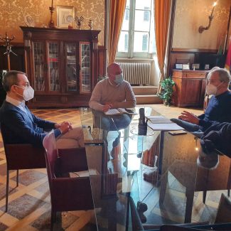 In vista della riapertura delle piscine all’aperto previste dal nuovo decreto a partire dal 15 maggio nelle zone gialle, si è svolto stamattina un incontro tra il sindaco di Osimo, Simone Pugnaloni, con il presidente del Team Marche, Mirco Santoni, gestore dell’impianto comunale della Vescovara, alla presenza del dirigente allo sport nonché segretario generale del Comune Giuliano Giulioni. «Tre i fronti di discussione che abbiamo affrontato – fa sapere in una nota Pugnaloni – e riguardano il sostegno economico a per le difficoltà causate dalla pandemia, i lavori di restyling all’impianto natatorio, il rapporto con le società sportive. Sul ristoro post-Covid, dopo un’accurata analisi delle perdite presunte, ci accorderemo su un contributo una tantum straordinario a favore del gestore. Questa buona pratica proseguirà anche con le altre società sportive osimane che gestiscono impianti pubblici. – sottolinea il sindaco – Sui lavori di restyling della piscina si partirà in estate con i primi interventi, che prevedranno la nuova copertura geodetica alla piscina media, lavori sulla pavimentazione ed arredi di piscina grande e spogliatoi. Per quanto riguarda le società sportive che fruiscono dell’impianto, l’impegno prioritario sarà verso il gruppo disabili con l’acquisto di un nuovo montacarichi per la piscina media. Soddisfazione è stata espressa da parte di tutti i presenti alla riunione, in attesa della vera ripartenza di tutte le attività».