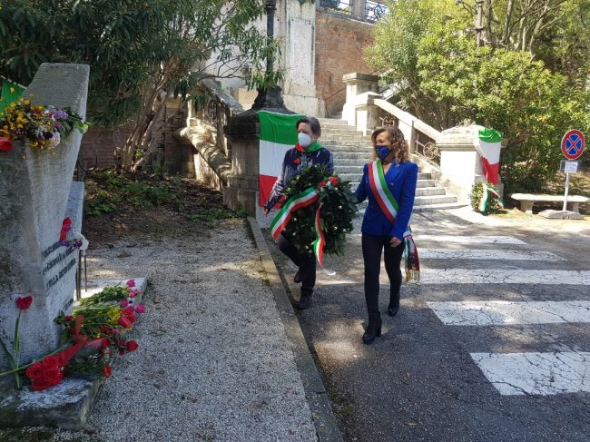 La cerimonia a Falconara, con il sindaco Stefania Signorini, si è tenuta in diretta Facebook: «Sono certa – ha detto – che i valori della Resistenza siano ancora vivi e forti nel cuore di tante persone. Li ho riconosciuti nei medici, negli infermieri, negli operatori socio sanitari e in tutti coloro che attraverso una presa di responsabilità mai vista prima hanno permesso e permettono al nostro sistema sanitario di funzionare sotto una pressione indicibile, in tutti i volontari e nei cittadini che hanno saputo fare rinunce nella consapevolezza che queste avessero un fine importante per la collettività».  Il sindaco Signorini ha concluso il suo intervento ribadendo la volontà di cambiare il nome a via Arturo Donaggio, che ha contribuito alla stesura del manifesto della razza. «Questo gesto è dovuto alla nostra comunità – ha affermato – e rappresenta il desiderio di libertà che ognuno di noi porta nel cuore: libertà dalla violenza, dalla persecuzione, libertà dalla sopraffazione».