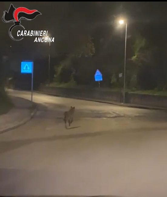 Lupo in città: avvistato dai carabinieri e ‘scortato’ fino al Conero. L’animale, in piena notte, intorno alle 2, girava indisturbato tra le auto parcheggiate in via Giannelli, probabilmente alla ricerca di cibo, prima di imbattersi in una gazzella. I militari hanno notato che il lupo peraltro era ferito a una zampa e, per evitare che venisse investito, hanno deciso di seguirlo in sicurezza fino a via del Conero dove lo stesso si è dileguato nella vegetazione del Monte Conero.