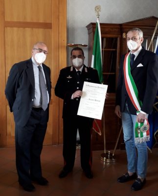 Si è tenuta mercoledì scorso, 5 maggio, presso la Prefettura di Ancona la cerimonia di consegna dell’onorificenza di Cavaliere Ordine al Merito della Repubblica Italiana al vice brigadiere Rosario Russo. Il prestigioso riconoscimento, conferito dalla Presidenza della Repubblica, è stato consegnato dal vicario del Prefetto, Clemente Di Nuzzo, alla presenza del sindaco di Numana, dove il carabinieri lavora. «Russo, che nel corso della sua carriera professionale ha ricevuto diversi riconoscimenti per meriti di servizio, rappresenta per la comunità di Numana un punto di riferimento, stimato e ben voluto da tutti» ha commentato Tombolini che ha voluto con queste parole manifestare la felicitazione dei numanesi per il prestigioso riconoscimento.