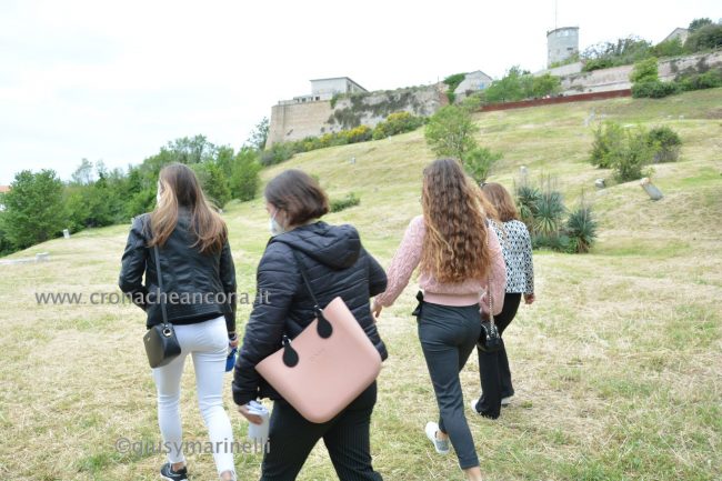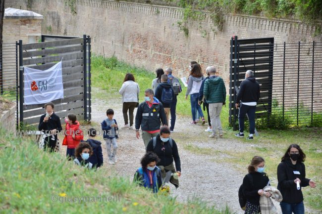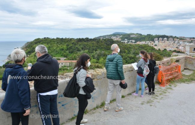 Una occasione per conoscere l’inestimabile patrimonio culturale d’Italia e, nel caso dell’area verde di Ancona, di apprezzare oltre ai monumenti storici uno ‘scrigno’ naturalistico ricco di varietà botanica. Questa mattina aveva registrato già il tutto esaurito, nel rispetto delle prenotazioni e delle misure anti-Covid, il primo tour delle ore 10.30 guidato dagli studenti-ciceroni Fai del liceo Galilei tra i sentieri del cuore verde della città, 35 ettari a picco sul mare. Famiglie con bambini, coppie e tanti giovani si sono dati appuntamento per iniziare la passeggiata immersi nella macchia mediterranea e tra i suoni della natura, dei gabbiani, del falco pellegrino e dei cormorani, partendo dall’ingresso di via Birarelli. I gruppi di partecipanti hanno ascoltato la storia del Faro ottocentesco e, lungo il percorso, delle postazioni in barbetta delle batterie d’artiglieria utilizzate per attaccare il nemico da terra e da mare. La passeggiata, durata circa un’ora, è poi proseguita verso l’ex Convento dei Cappuccini fino alle fortificazioni del Forte Cardeto, oggi visibili solo in parte, compreso il Bastione San Paolo, continuando verso l’antico cimitero ebraico di Ancona per poi terminare alla Polveriera Castelfidardo. Il percorso si è concluso alla ex caserma Villarey, sede della facoltà di Economia e Commercio.