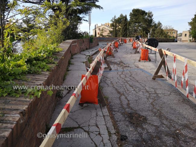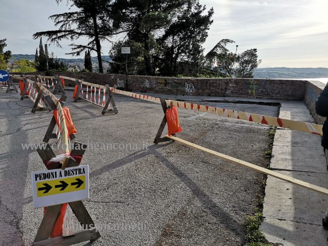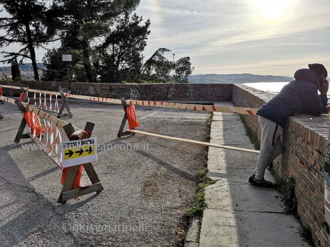 Di sicuro è stato rilevato un cedimento con relative crepe di un tratto di marciapiede attiguo al parapetto; e nel contempo c’è chi allarga i danni a una porzione dell’ampio selciato a forma di triangolo schiacciato, vittima di un avvallamento del manto superficiale. Un’incertezza che da un lato giustifica il protrarsi a tempo indeterminato del vistoso “incerottamento” che caratterizza il sito in cima allo storico quartiere collinare che si affaccia sul cuore a mare dell’Ankon (dal greco “gomito), con quattro strisce di transenne di legno lunghe quasi 50 metri fra le quali è stato ricavato un passaggio pedonale; dall’altro la cautela sulle cause della “malattia”, che potrebbero essere di tipo statico. Proprio per verificare questa ipotesi, più negativa, tra gli accertamenti in atto ci sono anche quelli di un geologo, che dovrà attuare sofisticati rilievi tecnologici per capire se, come si teme, i danni in superficie siano dovuti a leggeri ma non sottovalutabili smottamenti o instabilità sotterranee. L’alternativa, più confortante ma forse meno credibile, è che sul banco degli imputati ci possano finire piogge e infiltrazioni d’acqua. Ma più il tempo passa e più è difficile pensare che per la “guarigione” possa bastare una semplice riasfaltatura. Certo è che il colpo d’occhio per chi, salendo dalle vie Cialdini, Astagno, Podesti e Torrioni, appena passata piazza San Gallo, raggiunge il largo belvedere, è piuttosto inquietante. In realtà un po’ tutto lo strato della asfaltatura non è pianeggiante, ma caratterizzato da anomale ondulature e fenditure. Fenditure presenti anche nel muretto che si incunea a punta sul piccolo strapiombo celato dalla rigogliosa vegetazione.