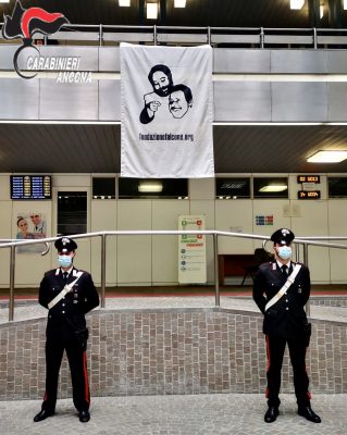 L’esposizione, sostenuta dall’Arma dei carabinieri, che ha fornito il proprio supporto all’installazione del lenzuolo con due militari del Comando Provinciale di Ancona, si protrarrà fino al 23 maggio.