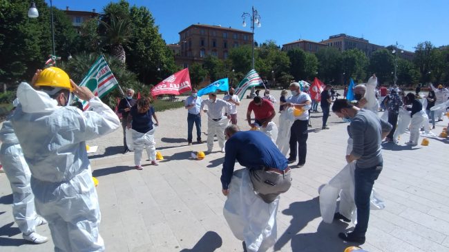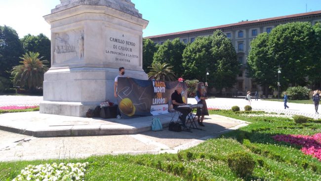 Nella giornata odierna a Roma e in altre cinque piazze d’Italia, anche quella di Ancona, si sono tenuti i flash mob per sensibilizzare la popolazione rispetto al problema degli incidenti sul lavoro. Le luci si sono accese dopo i fatti di Prato e da allora si è consumato una striscia senza fine di incidenti. E quindi, nell’ambito della mobilitazione di Cgil-Cisl-Uil, le federazioni delle costruzioni Feneal-Filca-Fillea hanno optato per un flash mob dalle ore 10 in Piazza Cavour ad Ancona: uno strumento nuovo per un problema vecchio e mai risolto come gli incidenti sul lavoro e le morti bianche. «Mentre a livello nazionale si parla di deregolamentazionie, massimo ribasso e apertura al 100% del subappalto, in questo territorio e in altri ci troviamo ad assistere ad una ripresa del settore che però mostra i problemi di sempre e cioè nei cantieri ci si fa male e si muore sostanzialmente come succedeva 50 anni fa. – ricordano le sigle sindacali – Il settore conosce una crescita media degli indicatori dell’11% (ore lavorate, persone occupate, nuove aziende, masse salari etc), ma all’aumentare di questi tornano ad aumentare anche i morti sul lavoro e gli incidenti gravi».