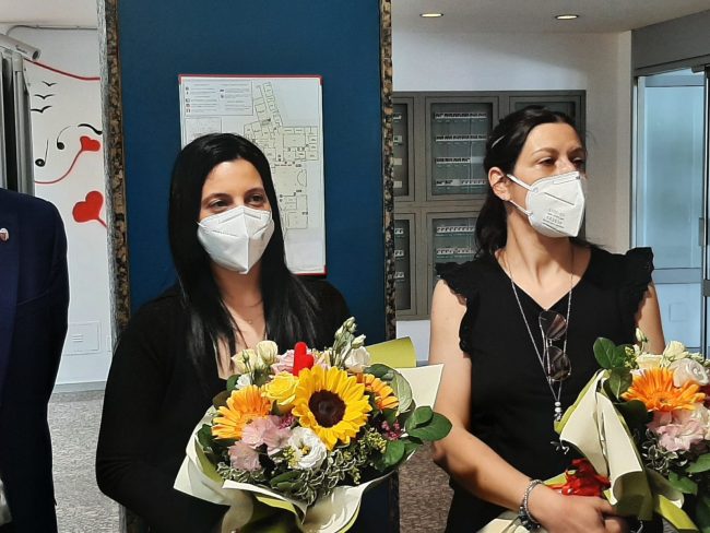 Oggi, a distanza di due mesi, c’è stato anche l’abbraccio di Katia con la mamma del piccolo, Roberta, durante una cerimonia a seguito della quale gli Ospedali Riuniti hanno voluto ricordare con una targa commemorativa installata nel vecchio ingresso del nosocomio, noto come “ospedaletto”.