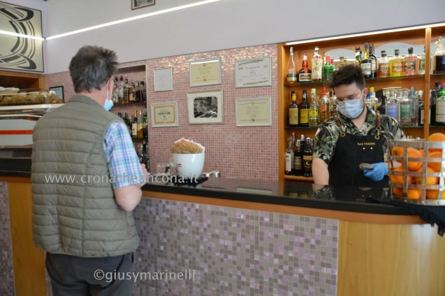Al locale Amarcord in piazza della Repubblica, i tavoli sono ben distanziati e chi li occupa ne approfitta subito anche per fare la pausa pranzo, seduti. «Le colazioni – dice Sara Ambrosio -, sono partite fin da subito, dall’apertura. Così è stato, più tardi, anche per il pranzo. Il bancone – prosegue – mancava. Un cliente ha fatto quasi della poesia dicendo proprio, nel fare colazione: “Mancava la coccola della chiacchiera”. Io – conclude – non posso dire che non sia vero. Oggi, è una giornata diversa e speriamo vada sempre meglio per tutti».