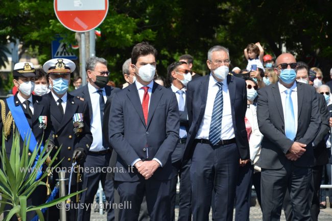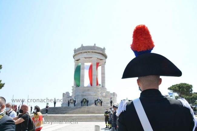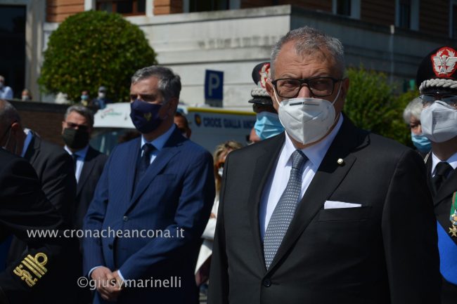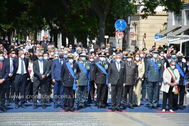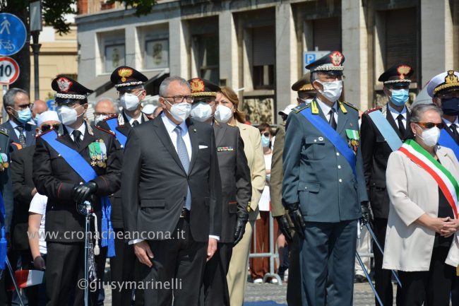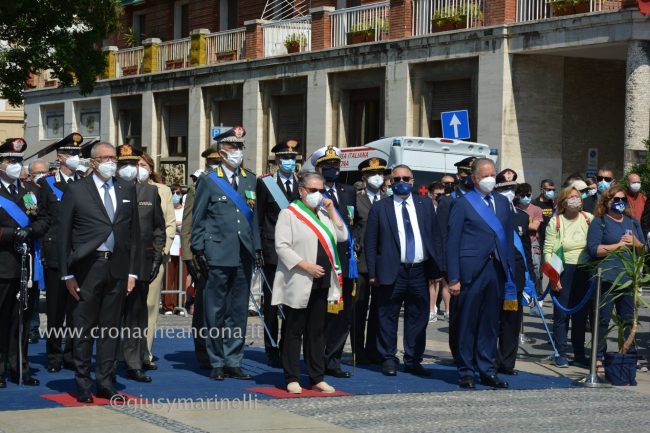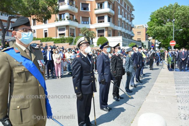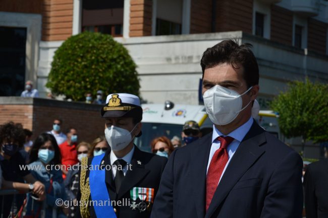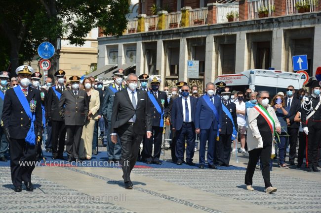 La seconda celebrata in tempo di Covid e con le dovute restrizioni. In piazza IV novembre, ad Ancona, presenti tra gli altri il sindaco dorico Valeria Mancinelli, il governatore Francesco Acquaroli e il neo prefetto Darco Pellos. Ha partecipato alla manifestazione anche una delegazione del comparto sanitario, simbolo della lotta alla pandemia. «La comunità nazionale celebra quest’anno la ricorrenza del 2 giugno – ha detto il prefetto Pellos nel suo discorso – nel senso dell’impegno collettivo per il rilancio del paese e nella ricerca di nuove prospettive di sviluppo e modernizzazione. Se ora possiamo guardare con maggior fiducia al futuro è soprattutto grazie alla ricchezza di risorse che il Paese ha saputo trovare e riscoprire con l’apporto unitario che ciascuno ha offerto». Il prefetto ha espresso gratitudine a «ciascun cittadino che con senso civico e rispetto delle regole ha dato il proprio personale contributo alla lotta contro il virus». Il pensiero è andato agli «anziani e ai giovani, radici e futuro della nazione, che hanno subito in modo rilevante l’impatto della crisi. Il commosso omaggio va a coloro che, ancora in molti, sono stati colpiti dal contagio e hanno perso la vita con un carico di sofferenza che appartiene a tutta la collettività».