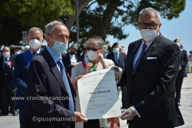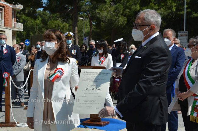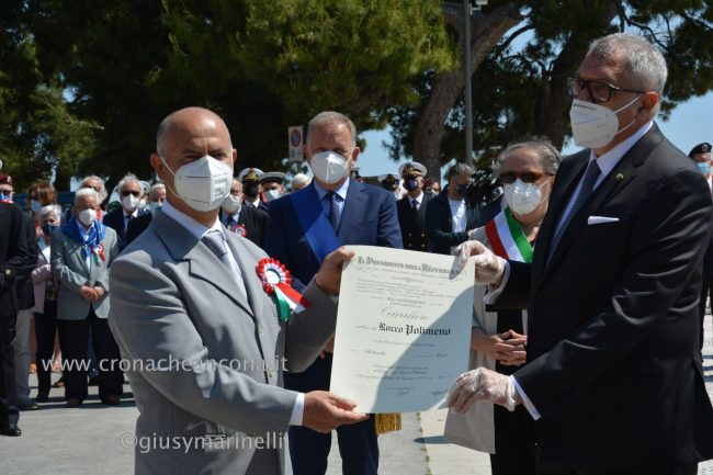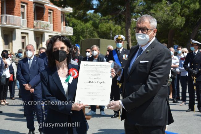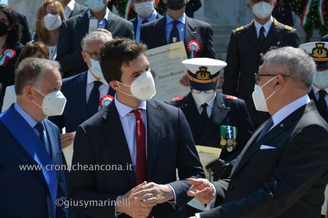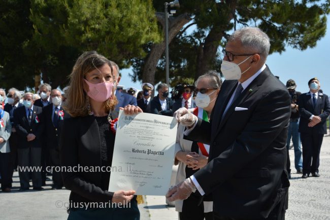 Il governatore Francesco Acquaroli ha invece ricordato come «abbiamo celebrato una ricorrenza che unisce la nostra Nazione e che segna una nuova ripartenza. Voglio ringraziare tutti quanti, in questo anno, si sono distinti con determinazione e coraggio nella lotta alla pandemia». A margine della cerimonia il sindaco Valeria Mancinelli ha sottolineato come «la ricorrenza del 2 giugno non è solo commemorazione, serve anche per ricordarci che l’esistenza della Repubblica non si può dare per scontata, che c’è stato un tempo, ad esempio la generazione che precede la nostra, per la quale la forma repubblicana e la democrazia sono state una conquista». Un’osservazione tanto più valida secondo la sindaca in un’epoca contrassegnata «non da piccoli segnali» ma da« crepe» capaci di mettere a rischio la democrazia rappresentativa. «Per reagire non bisogna gridare ‘al lupo’, lanciare allarmi e messaggi moralistici – ha rimarcato la Mancinelli -, ma bisogna fare in modo che la democrazia funzioni, cioè che sia in grado di rispondere alle domande, alle esigenze, e anche alle paure dei cittadini, di fronte alla globalizzazione e ad una serie di cambiamenti che hanno colpito non solo le fasce marginali della nostra società, ma anche il ceto medio». Dopo la deposizione delle corone di alloro, l’Alzabandiera, l’Inno nazionale e la lettura del messaggio del presidente della Repubblica, le celebrazioni sono poi proseguite con la consegna delle onorificenze dell’Ordine al merito della Repubblica e delle Medaglie d’onore per i reduci dai campi di concentramento. Di seguito l’elenco con i nomi dei premiati