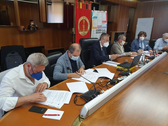IL PROTOCOLLO è stato firmato questa mattina. Il rettore Gregori: «Si pone innanzitutto l'obiettivo di consolidare e, laddove possibile, rafforzare strumenti e modelli organizzativi per garantire legalità, trasparenza, contrasto alle infiltrazioni mafiose»