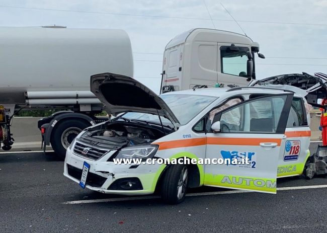 Incidente lungo l’A14 Bologna-Taranto al chilometro 241 direzione sud, questa mattina poco dopo le 11. Il tratto rimasto coinvolto è quello tra Ancona Sud e Loreto. Un Tir, stando alle prime informazioni, si è schiantato contro un’automedica del 118 per cause in corso di accertamento da parte della polizia Stradale accorsa sul luogo insieme alle squadre dei Vigili del Fuoco. L’automedica, stando a una prima ricostruzione, non sarebbe stata vista dal camionista.