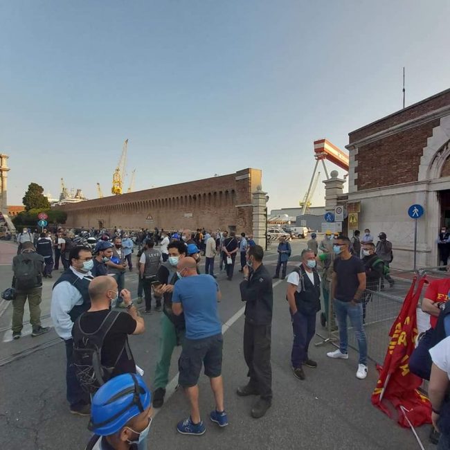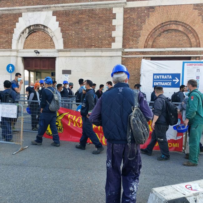 Sciopero di due ore questa mattina alla Fincantieri: braccia incrociate degli operatori all’ingresso del cantiere a partite dalle 8. Il sit-in è stato promosso da Fiom Cgil e Uil Ancona, a seguito dell’episodio «che ha visto coinvolto un lavoratore nei giorni scorsi». Per la precisione, una settimana fa esatta, quando un 24enne bengalese, dipendente di una ditta in appalto, è stato colpito alla testa da un martello, finendo in prognosi riservata all’ospedale di Torrette. Sull’episodio è stato aperto un fascicolo dalla procura e approfondito sul campo dagli agenti della Squadra Mobile. Due le ipotesi: potrebbe trattarsi di un incidente sul lavoro oppure di un’aggressione. Fiom e Uil di Ancona hanno denunciato «ancora una volta il grande pericolo di sfruttamento e illegalità che si insinua tra la filiera degli appalti e subappalti in Fincantieri. Il caporalato, la paga globale, l’evasione fiscale e contributiva nonché il mancato rispetto delle norme sulla sicurezza sono alcuni degli aspetti – sostengono – che si verificano ormai da troppo tempo e che determinano una sospensione della legalità.» Da anni, inoltre, «Fiom e Uil Ancona denunciano queste situazioni e ora alla notizia delle gravissime condizioni di salute di un lavoratore dipendente di una ditta di appalto dopo un incidente accaduto in cantiere e su cui sta indagando la magistratura con il sospetto di essere collegato al caporalato, si è proclamato lo sciopero di 2 ore per tutto lo stabilimento. Lo sciopero – hanno sottolineato – deve dare un segnale importante per ottenere un reale impegno affinché situazioni di questo tipo, che vedono lo sfruttamento della parte più debole – hanno concluso – non si debbano più ripetere».