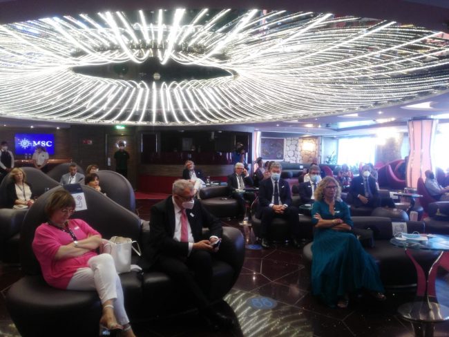 «Per crescere – continua Massa –, le condizioni principali stanno nel piano infrastrutturale e nei collegamenti con le ferrovie ed aeroporti». Nell’attesa che il porto di Ancona si trasformi per accogliere navi di questa stazza, Splendida attracca alla banchina 26 – esterna e quindi che meglio si presta alle manovre – ed i passeggeri vengono accompagnati nelle escursioni dai mezzi di Conerobus: visita alla Riviera del Conero, un giro in città a bordo dell’autobus ed a piedi, e tappa sulla spiaggia di velluto di Senigallia. Il tour della crociera parte da Trieste, per poi fare tappa ad Ancona, Dubrovnik, Bari, Corfù, Spalato e tornare a Trieste. Il tutto in una settimana durante la quale i passeggeri restano in quella che Massa ha definito una “bolla sociale”, ovvero un contesto di massima sicurezza anti-Covid: «siamo stati il primo operatore a ripartire nell’industria delle crociere già nell’agosto 2020 ed abbiamo implementato un protocollo che poi è diventato punto di riferimento per l’hospitality in generale. Il concetto di “bolla sociale”, appunto». A ieri, a bordo della nave c’erano circa mille passeggeri e poco meno di 300 se ne sono imbarcati ad Ancona. «Se avessi dovuto sognare un’ultima uscita come presidente dell’Autorità di sistema portuale, sarebbe stata così – il commento di Rodolfo Giampieri, con un piede già fuori dallo scalo nell’attesa che arrivi il suo successore Matteo Africano (martedì le commissioni Trasporti di Camera e Senato voteranno sulla sua nomina) –. C’è stato un gioco di squadra e ringrazio gli operatori del porto che la domenica hanno spostato le loro attività commerciali per permettere l’attracco di questa nave nella banchina 26». Gioco di squadra sottolineato anche dall’assessore regionale alle Infrastrutture Francesco Baldelli e dall’assessora comunale al Porto Ida Simonella. Dopo il saluto di Stefania Vago, il nuovo prefetto di Ancona Darco Pellos ha parlato di «una nave Splendida, in una città splendida, con alle spalle una regione splendida», mentre il contrammiraglio Enrico Moretti, comandante del porto dorico, ha ricordato il proverbio africano secondo cui «se vuoi vincere, corri. Ma se vuoi andare lontano, cammina insieme».