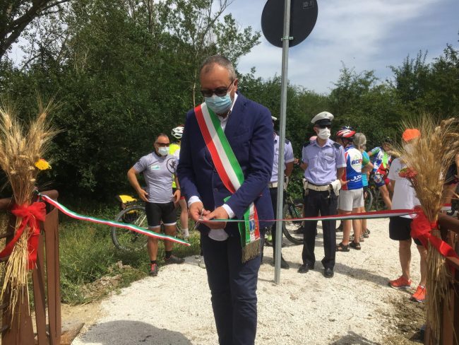 Inaugurato questa mattina il ponte ciclopedonale che sovrasta il torrente Triponzio. Collegherà i comuni di Montemarciano e Monte san Vito. L’inaugurazione è avvenuta alla presenza dei sindaci Damiano Bartozzi e Thomas Cillo. Il ponte è stato interamente finanziato dalla Regione Marche e tornerà a collegare i territori di Montemarciano e Monte San Vito attraverso il “percorso Agricom”, tre km da via Metrano in territorio di Monte San Vito a via Nocicchia, a Montemarciano. Il percorso “Agricom Triponzio-Esino” permette di conoscere alcune antiche contrade rurali e di immergersi nel verde in un tour che si consiglia di affrontare in mountain-bike, per via del sentiero non asfaltato. Pedalando in direzione nord fino al confine tra via Santa Veneranda e via Buratta, sulla sinistra si apre una stradina di campagna (con terreno dissestato in alcuni punti, quindi consigliamo di fare attenzione) che immette nella contrada “Nocicchia”, la quale deve il suo nome alla presenza di noccioli (letteralmente, “nux” cioè noce, “nocicula” cioè piccola noce) che ricoprivano anticamente questa zona, a ridosso della sponda nord del Triponzio, affluente del fiume Esino.