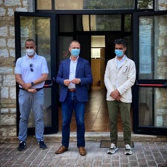 Il sindaco Filippo Moschella (al centro) con il dirigente scolastico Francesco Lucantoni e Marco Pierpaoli, segretario di Confartigianato