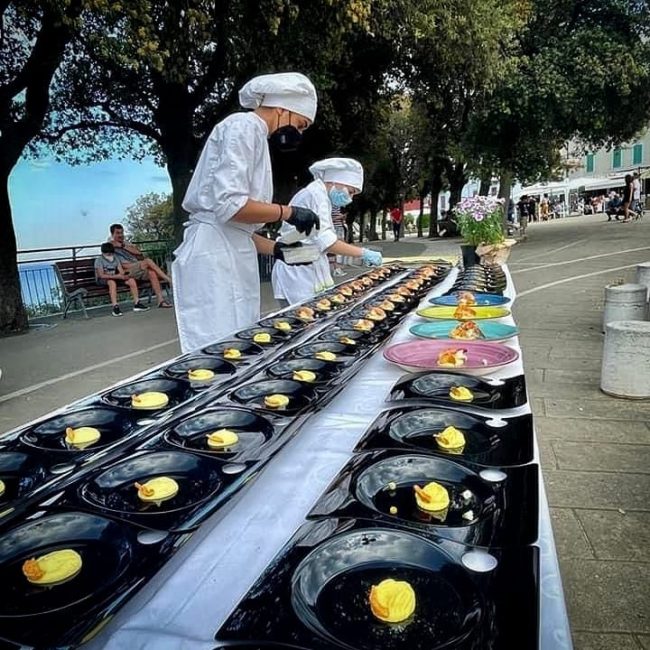 «Si tratta di una struttura per ospitare incontri, conferenze e adibita ad uso laboratorio didattico di cucina – spiega il sindaco Filippo Moschella – Il locale, messo a disposizione dall’amministrazione comunale di Sirolo e ubicato nell’ex scuola primaria, ospiterà anche un infopoint di Estrovagate, la Boutique di Viaggi dell’Einstein-Nebbia». Il taglio del nastro è avvenuto alla presenza del dirigente Francesco Lucantoni, del sindaco di Sirolo e di Marco Pierpaoli, segretario di Confartigianato. A seguire, sullo scenario del suggestivo belvedere della Perla dell’Adriatico , il docente chef Mauro Mengucci e le studentesse e gli studenti del nostro istituto hanno dato vita ad uno spettacolare showcooking accompagnato dalla degustazione guidata del docente sommelier Cesare Lapadula.