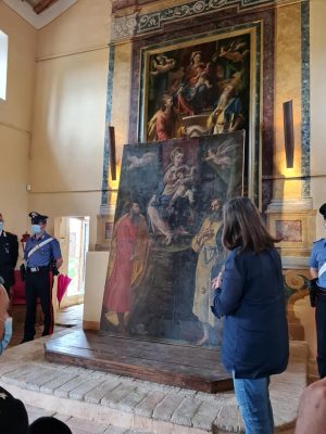La pala d’altare restituita dai carabinieri del Ntpc ai proprietari della chiesa di San Filippo De Plano di Osimo