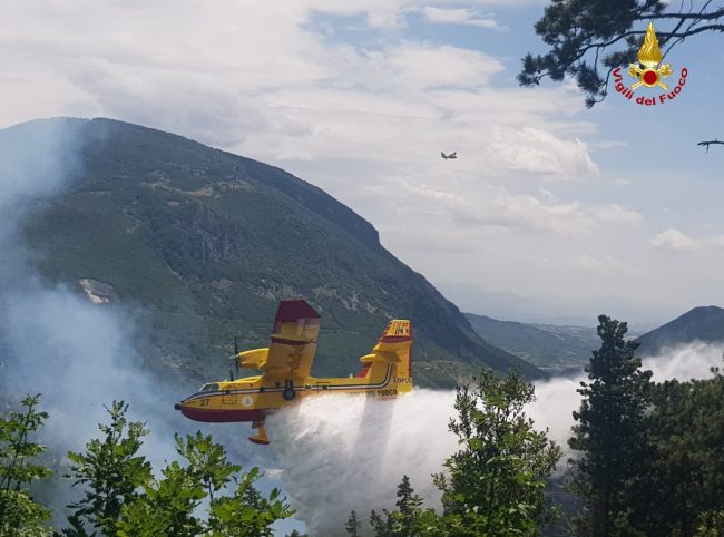 In questo momento sono in azione due Canadair in supporto dei vigili del fuoco con lanci di acqua. Gli elicotteri stanno gettano sull’incendio l’acqua prelevata dalla diga di Castreccioni.