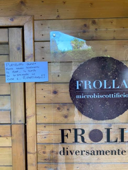 «Noi – conclude -, il tempo di sistemare e riordinare Frolla per ripartire poi già da questo pomeriggio con i caffè. La cosa che dispiace di tutto ciò è indubbiamente il gesto. Ma questo gesto, non ci ferma.»